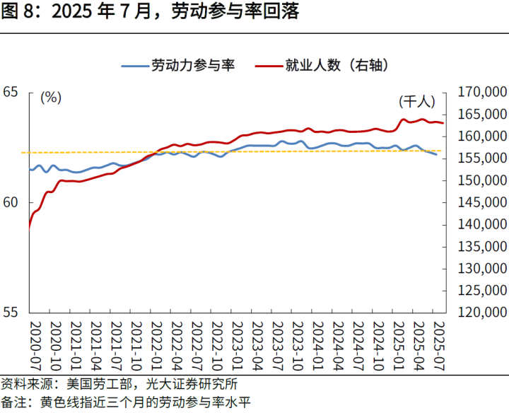 劳动参与率回落,失业率抬升。